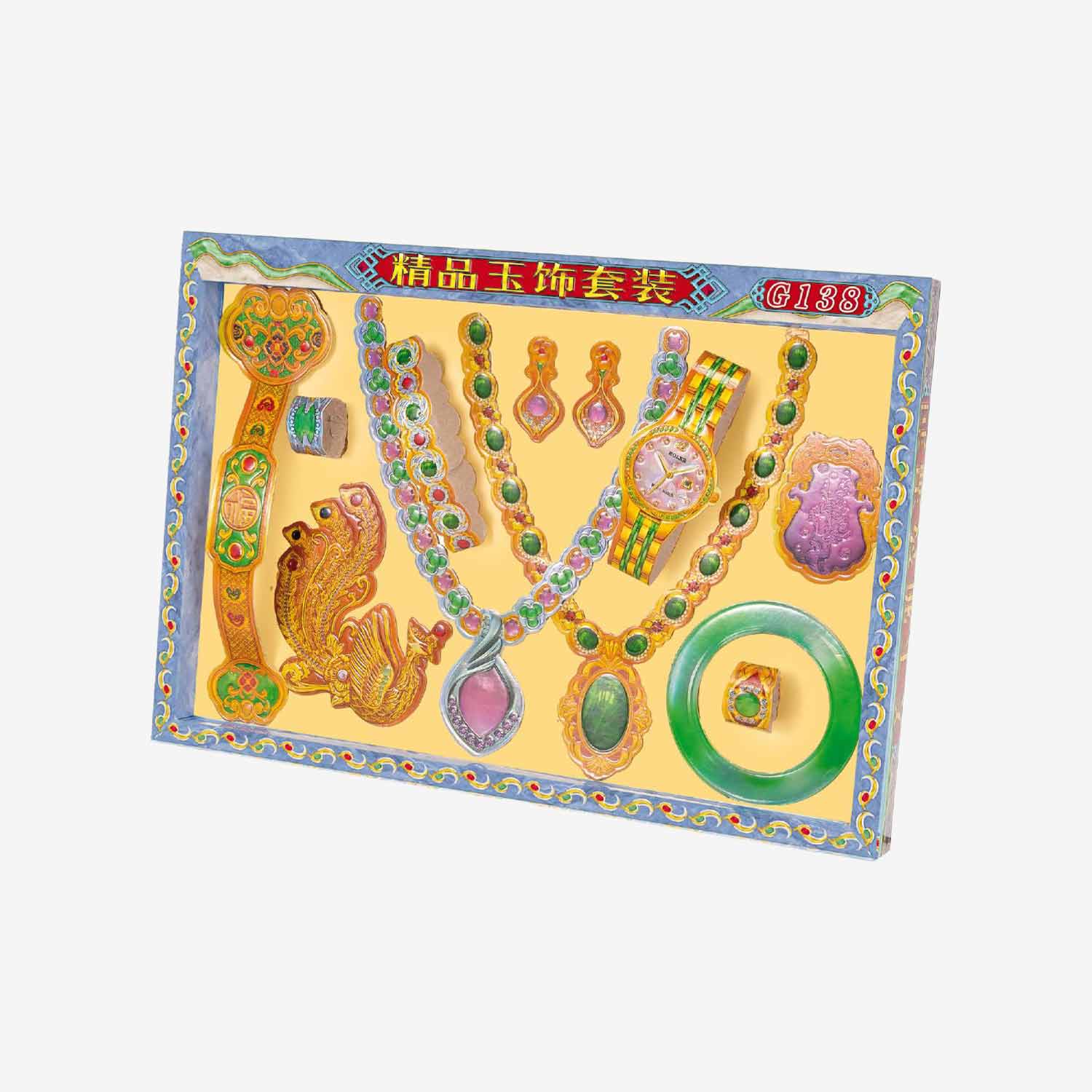 FestivityPaper Craft ProductsQing MingHell Bank Tender往生钱 916 古力皇 (金)$15.00M216G916 古力皇 (银)$15.00M216S中游艇$18.00H101大游艇$35.00H84玉饰(女)$2.50G138A玉饰(男)$2.50G138招财大元宝$3.80F125 2168 特级超皇金$16.00M051G2168 特级超皇银$16.00M051S荷花 (大悲咒) 元宝莲花纸 (200张)$15.00M256荷花 (极乐世界) 元宝莲花纸 (200张)$12.00M256A